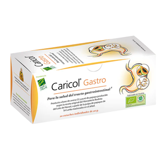 Caricol® Gastro es un complemento alimenticio elaborado a partir de pulpa de papaya y de avena con certificación orgánica, libres de OGM y cuidadosamente seleccionadas. Los betaglucanos de la avena1 y el galacturonano de la papaya se concentran de forma natural (mediante un proceso de producción patentado originado en el Monasterio Budista Lotus, Big Island, Hawaii) para cuidar la salud del tracto gastrointestinal.