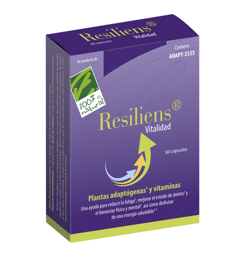 Resiliens® Vitalidad es un complemento alimenticio que contiene una fórmula basada en el extracto patentado ADAPT-232S, con efecto sinérgico entre tres plantas adaptógenas: Esquisandra, Rodiola, y Eleuterococo, junto con la vitamina B5, y reforzado con las vitaminas B1, B2 y B6.