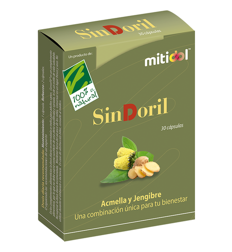SinDoril is a food supplement based on Mitidol ® , a unique combination of two widely studied standardized extracts from traditionally used plants: Acmella (Acmella oleracea (L.) RK Jansen) and Ginger (Zingiber officinale Roscoe).