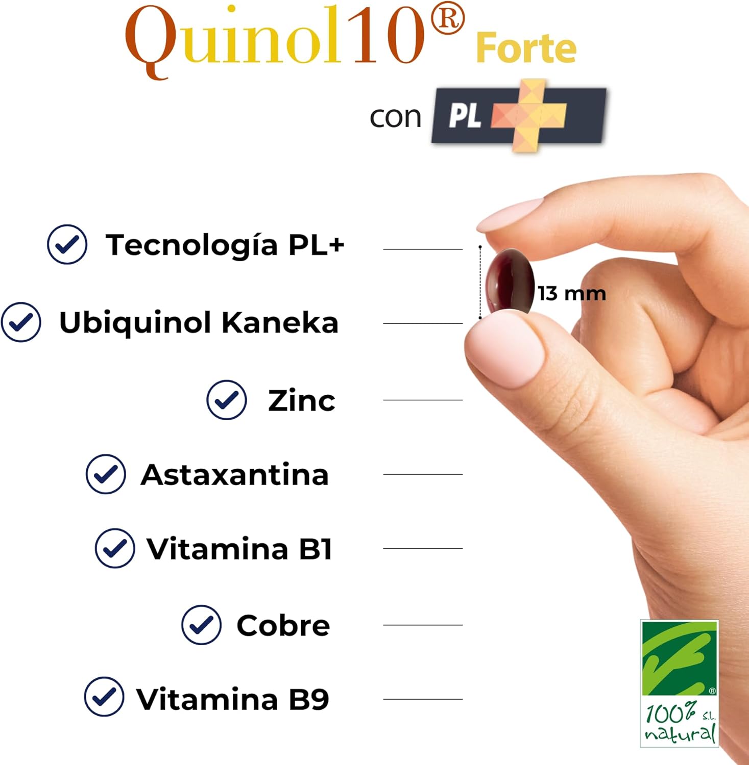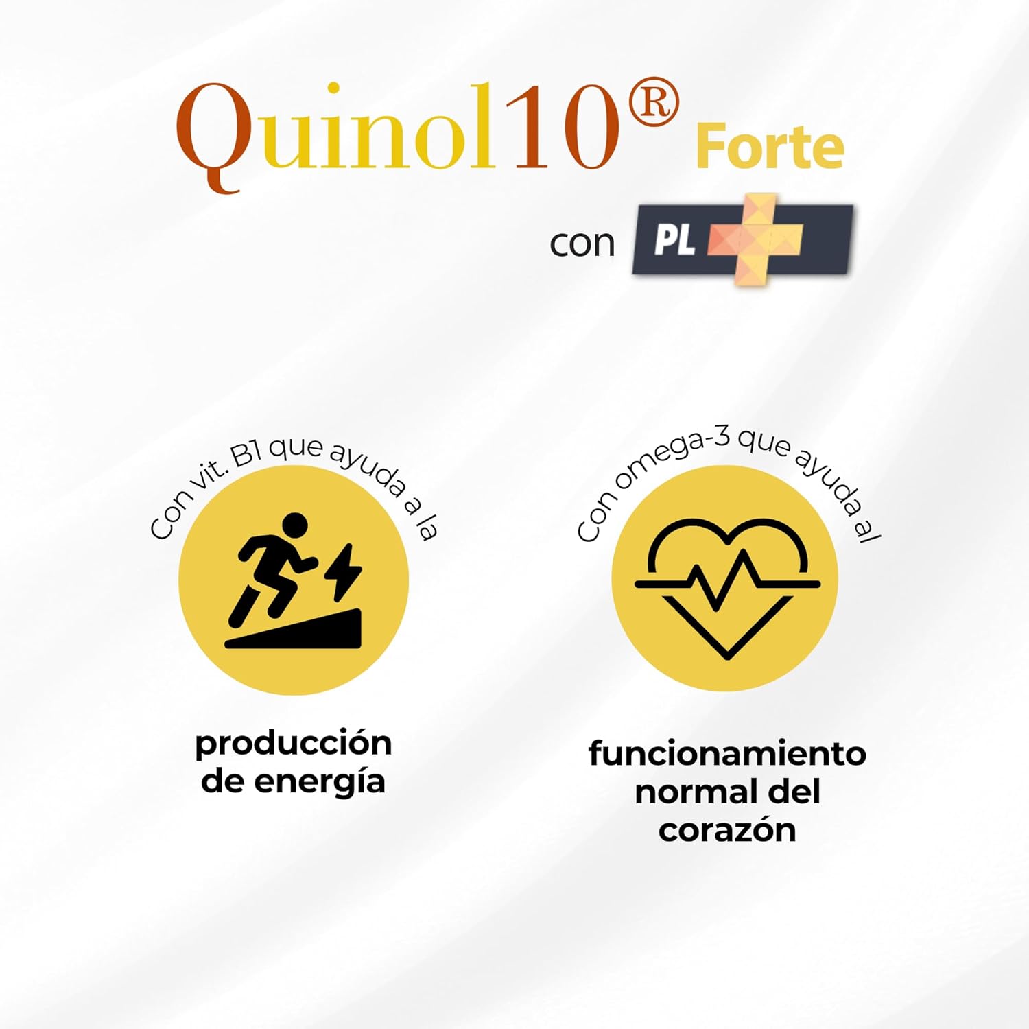 Ubiquinol Kaneka (Kaneka QualityTM) juntamente com a tecnologia PL+, um concentrado de fosfolípidos do óleo de krill antártico que potencia a absorção e biodisponibilidade do ubiquinol, além de fornecer nutrientes essenciais como os ácidos gordos ómega-3 (EPA e DHA). O produto é reforçado com ácido fólico, zinco, cobre, vitamina B1 e astaxantina.