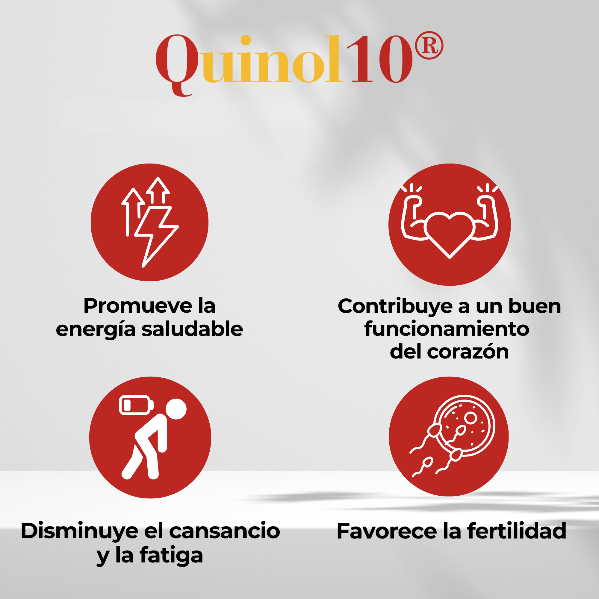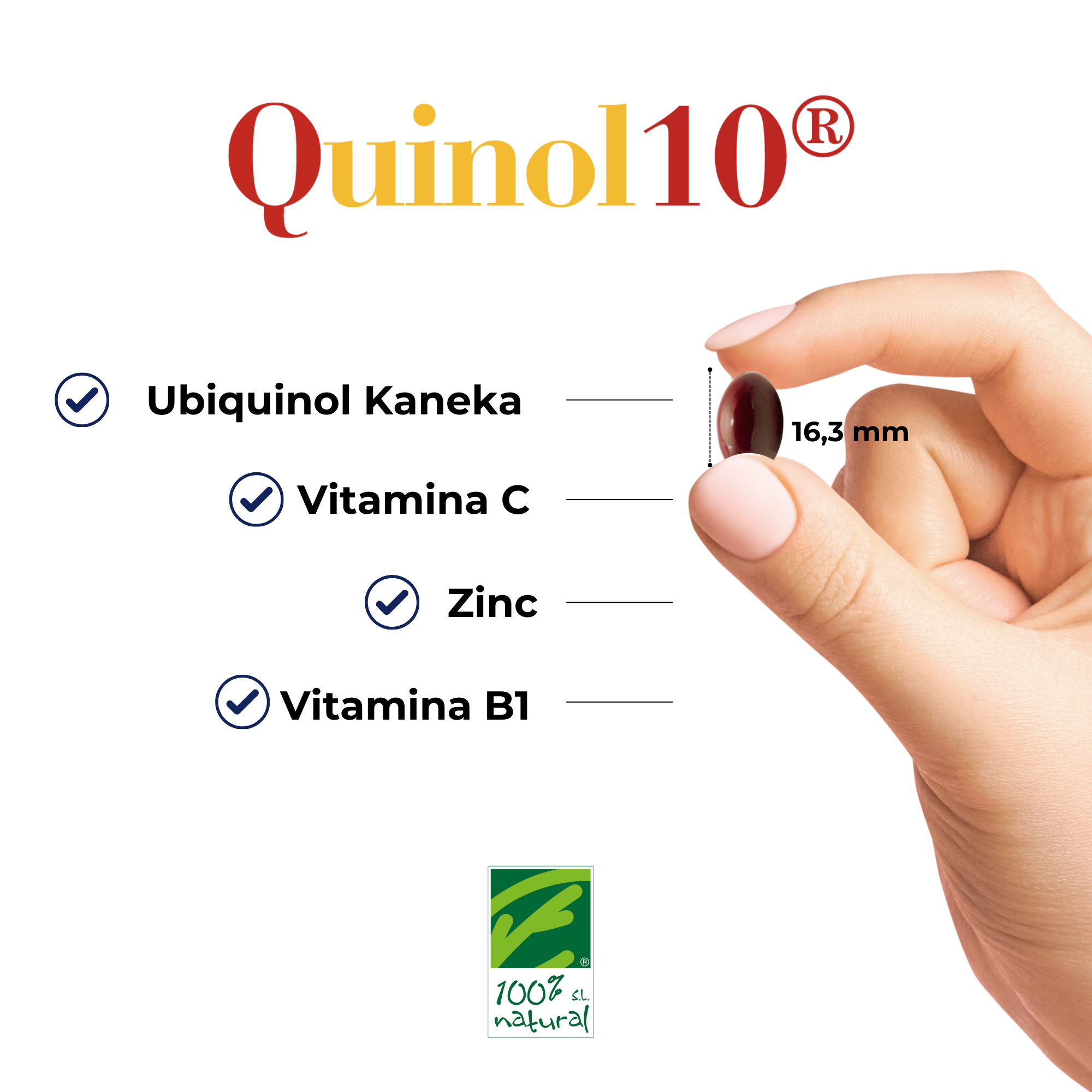 - Ubiquinol, a forma ativa da Coenzima Q10, que o organismo aproveita diretamente, ideal quando a sua conversão natural diminui com a idade.